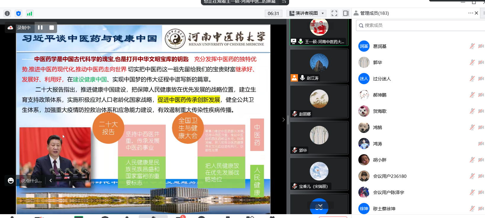 11月29日,药学院特邀河南中医药大学王一硕副教授作题为《坚持守正创新,推动中药高质量发展》的学术讲座。该讲座采取线上方式进行,药学院、复兴书院等相关专业师生参加。